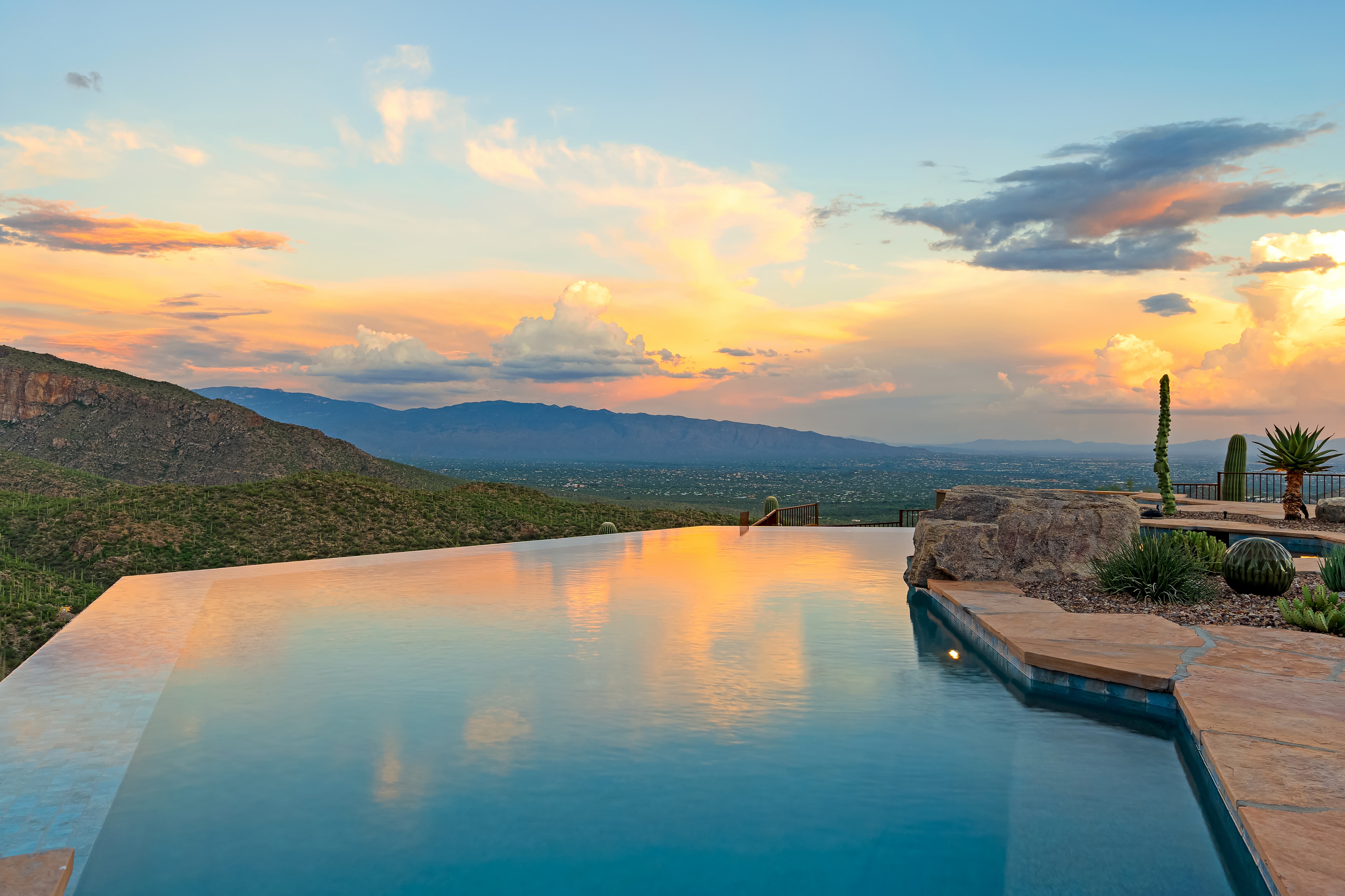 The homeowner’s objective was to preserve the natural desert views and create a calming outdoor environment with generous space for entertaining. A restrained palette of materials, minimal landscaping, and low-profile planters were utilized to integrate the project with existing rock outcroppings, mature trees, and distant saguaros. The result is a beautiful space that feels natural and open.